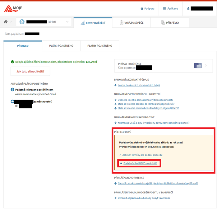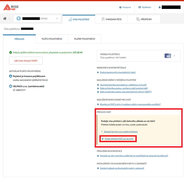 Přehled OSVČ lze jednoduše podat on-line prostřednictvím aplikace Moje VZP