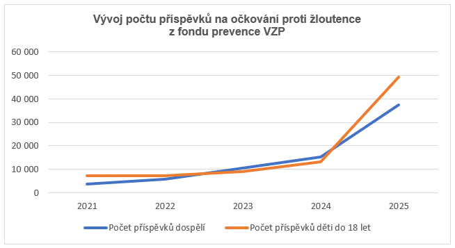 „Tak rekordní nárůst žádostí o příspěvek na očkování proti žloutence se dal předpokládat vzhledem k výskytu hepatitidy A hlavně v Praze nebo v Brně. Výrazný zájem jsme zaznamenali jak u dospělých, tak u dětí,“ vypočítává Michal Nezbeda, náměstek ředitele VZP ČR pro služby klientům, a dodává: „Data jasně ukazují, že naši klienti prevenci berou vážně. Loňský rok tak násobně překonal roky předchozí jak v počtech žádostí, tak v částce, kterou jsme z fondu prevence vyplatili třeba právě na očkování proti žloutence. I to je jasný signál pro nás jako zdravotní pojišťovnu s více než 6,1 miliony klientů, kdy i nadále chceme prevenci plně podporovat.“