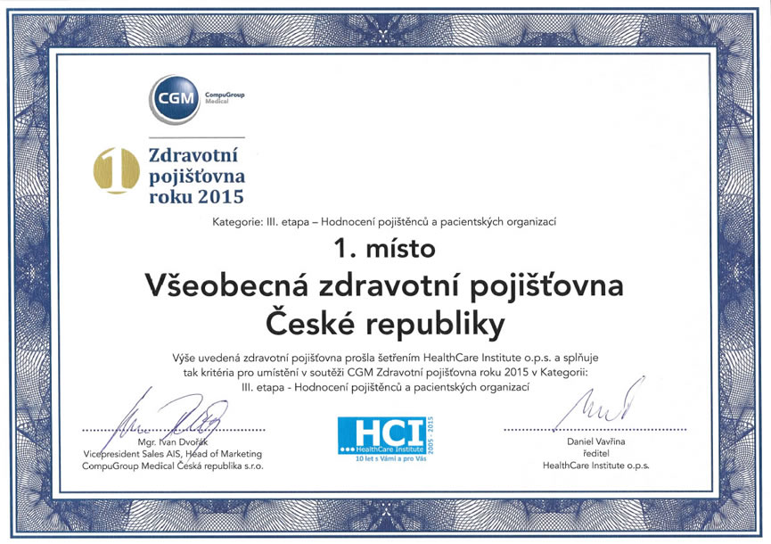 Podle klientů zdravotních pojišťoven a pacientských organizací je nejlepší zdravotní pojišťovnou v Česku VZP. Výsledky prvního ročníku soutěže o nejlepší zdravotní pojišťovnu vyhlásili v pondělí její organizátoři na konferenci Efektivní nemocnice. Hlavními pořadateli celé akce byly společnosti HealthCare Institute a CompuGroup Medical.